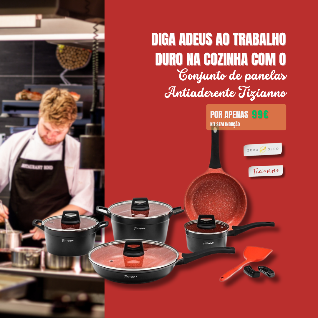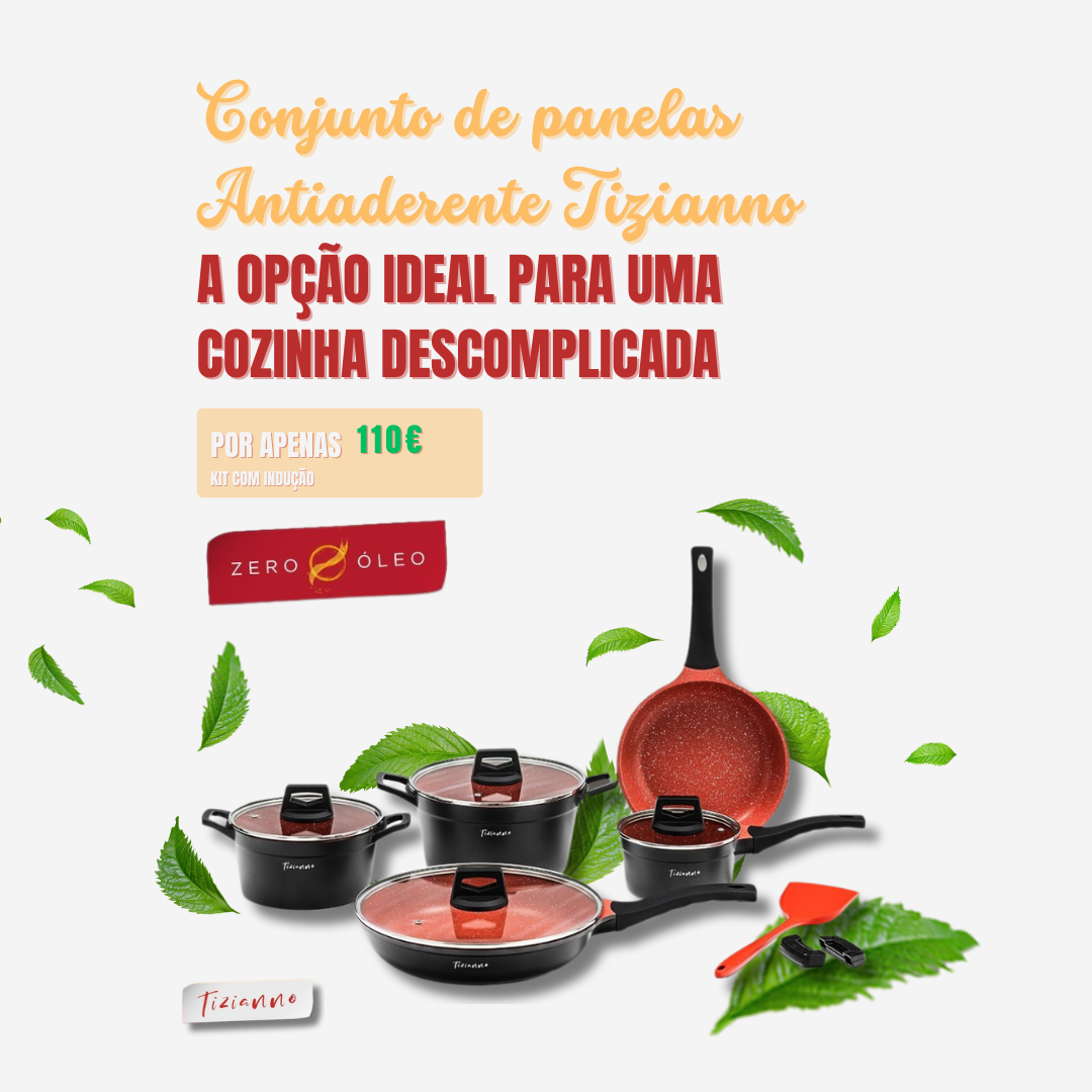As Panelas Tizianno possuem revestimento antiaderente durável e livre de substâncias tóxicas como PTFE e PFOA, garantindo uma cozinha mais saudável.